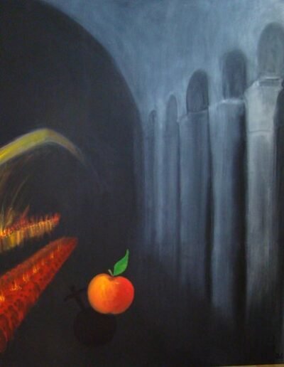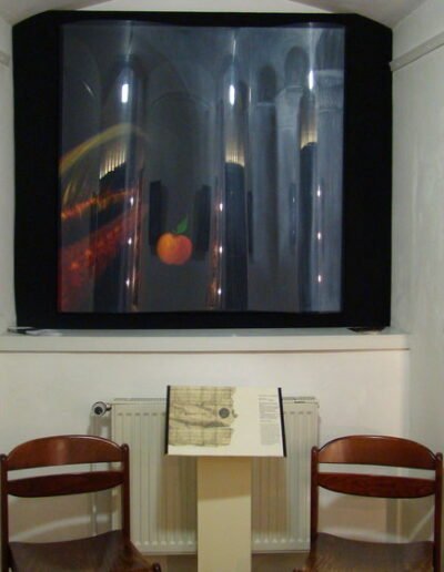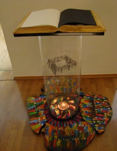 l’enregistrement des sonorités de l’installation que vous avez devant vous. À partir des bribes de sons, H-H Ginzel a composé une musique en incluant les sonorités en se basant sur le texte donné. Une collaboration et un échange très riches entre les artistes se sont harmonieusement mis en place.