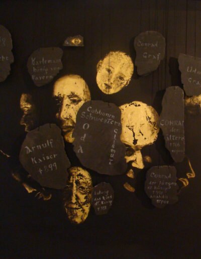 Le visiteur déambule entre des visages qui apparaissent dans l’ombre, des scènes de vie déformées avec des effets d’optique. Le peu de documents encore existants en latin sont écrits en braille pour souligner la double ignorance ou l’aveuglement envers une histoire peu connue mais qui a pourtant été un carrefour des grands changements.